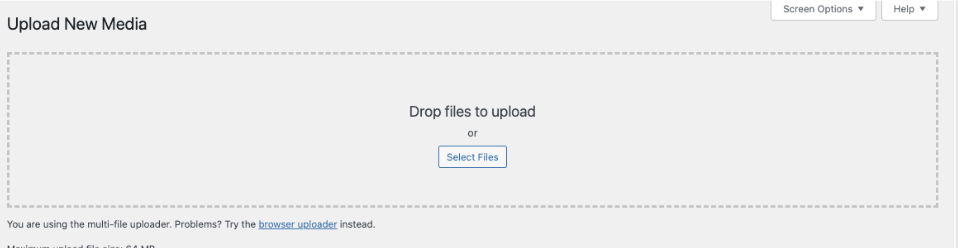 On the top of the Media Library, click on Add New. Then select the image or video that you want to upload.