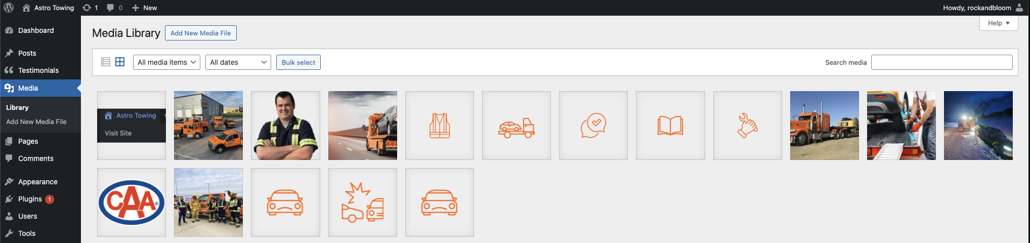 The Media Library tab shows the images that are already on the website.