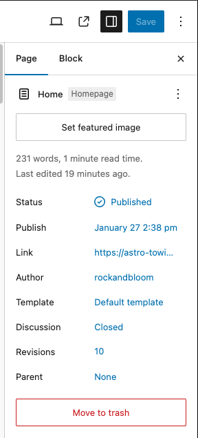 All page edits must be saved by clicking on the “Save” Button on the top right of the screen