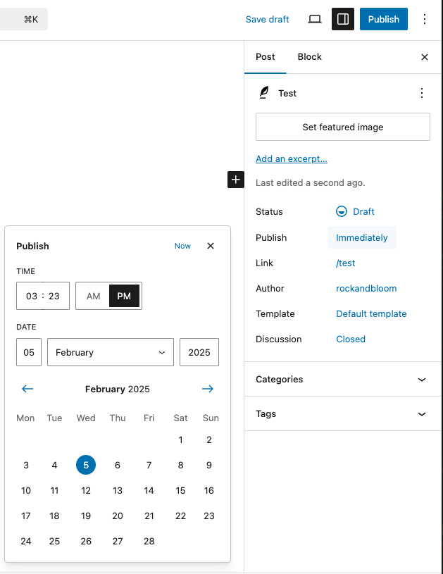 - Set the date and time the post should be published on.