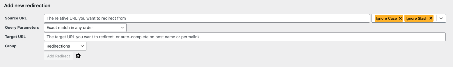 - The new url (URL you wish to redirect from)