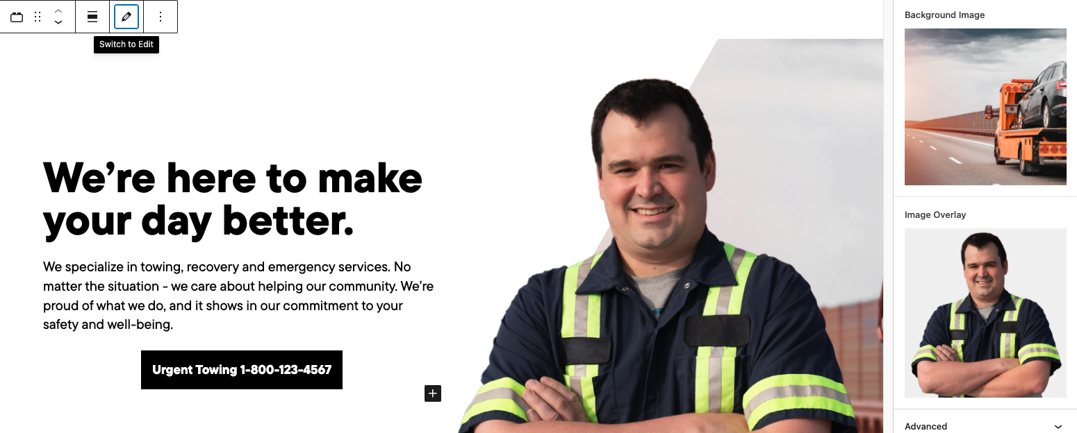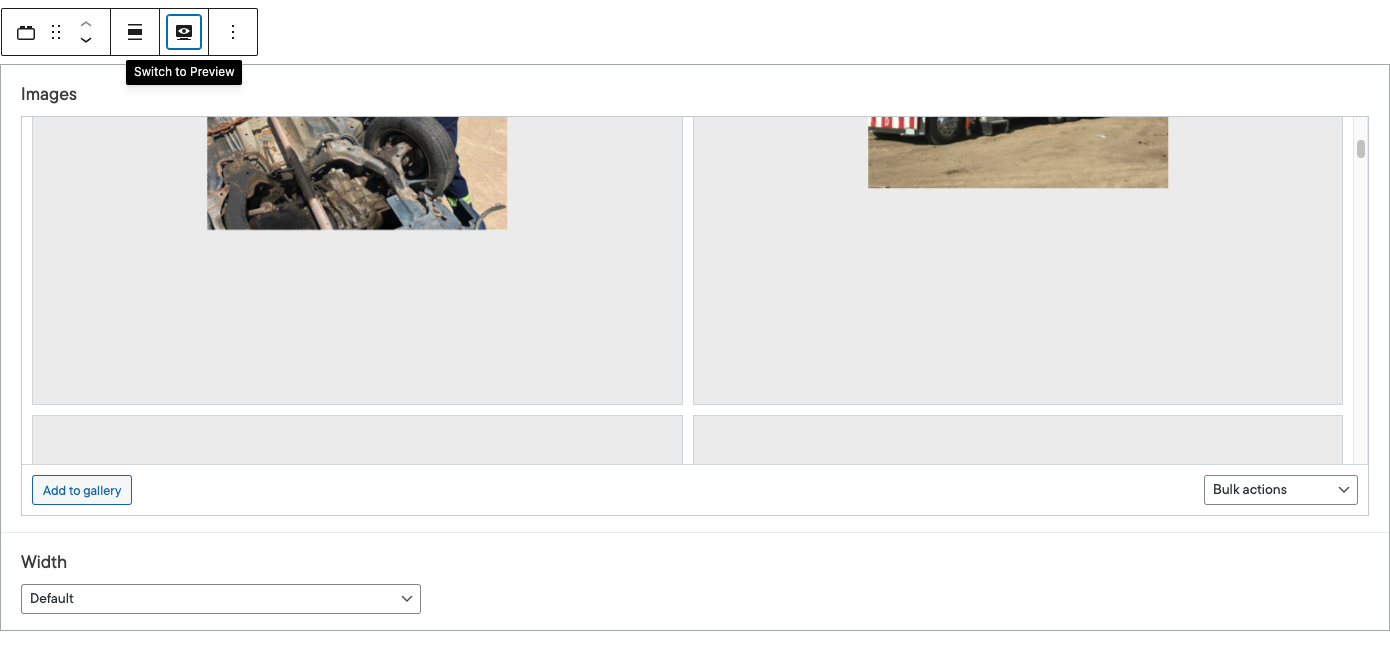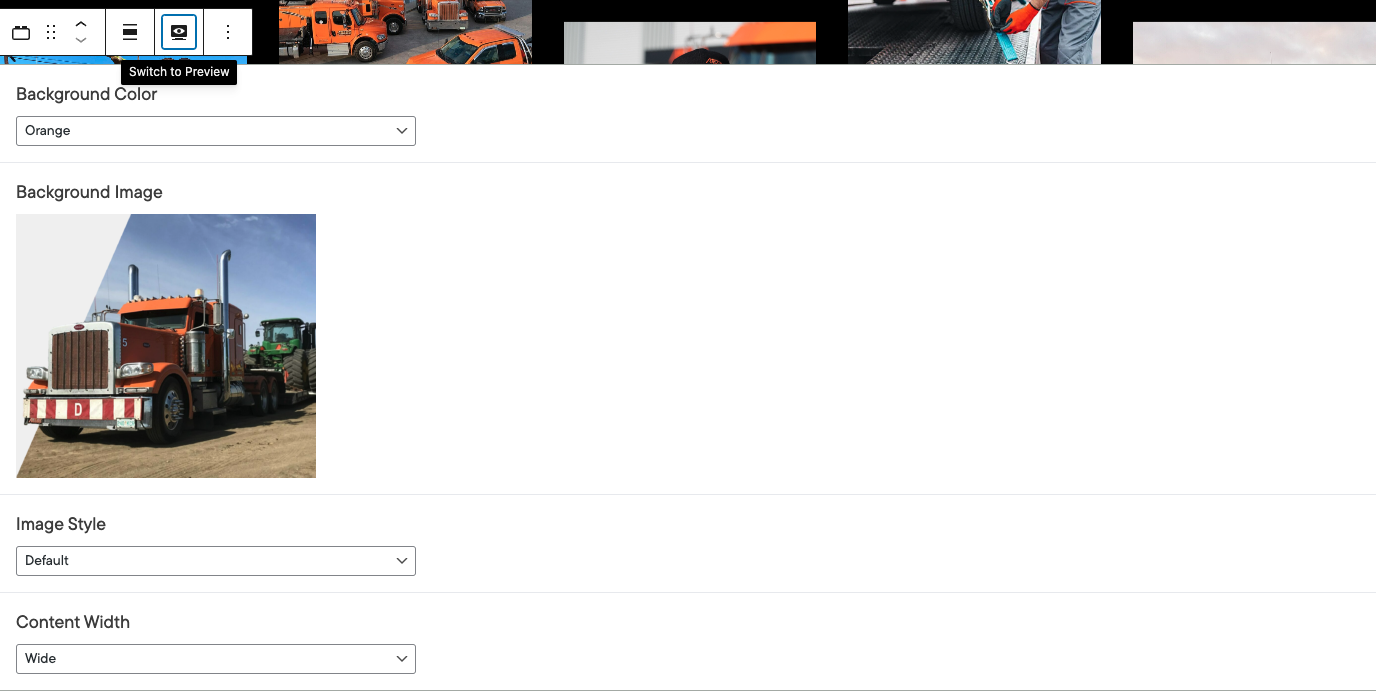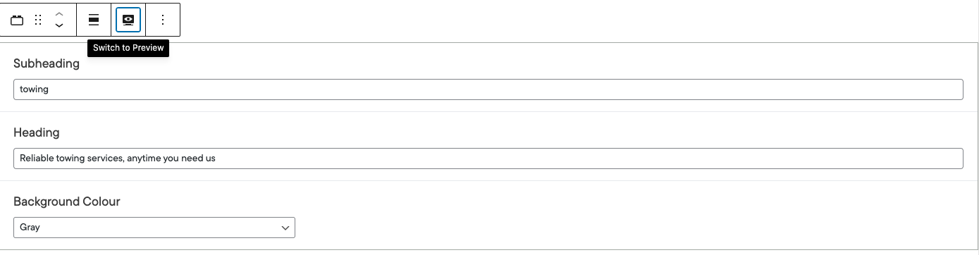 - Select the block and select the preview mode option shown above the block