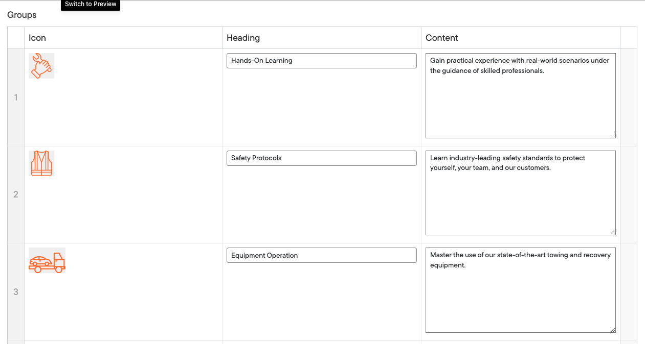 - Content: Edit in Preview Mode