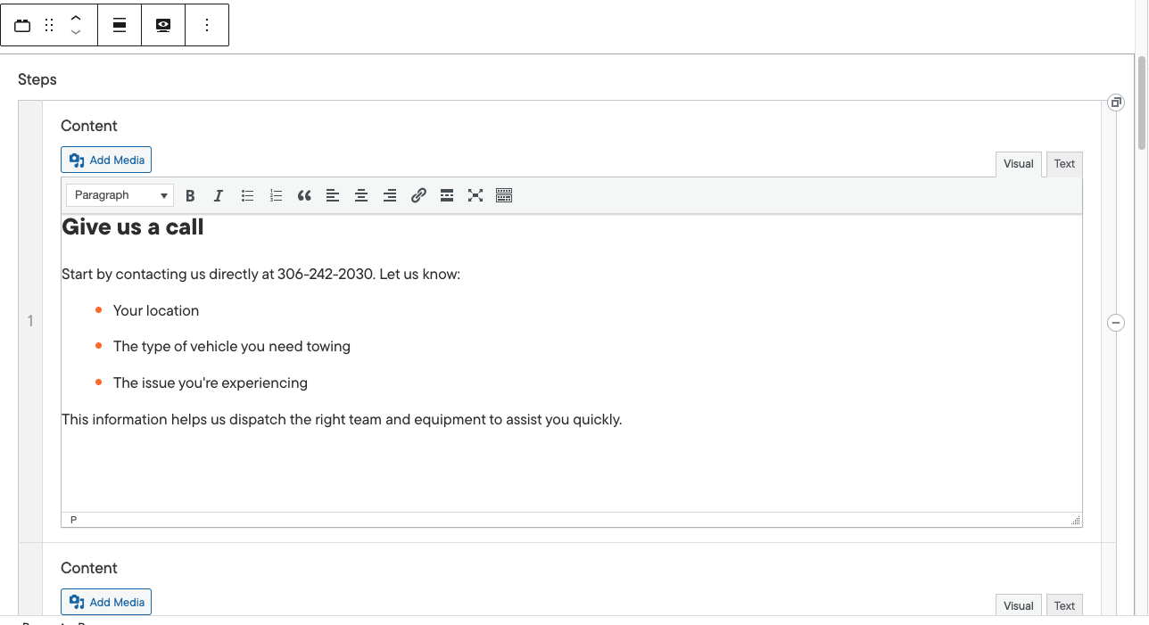 - Steps: Steps content