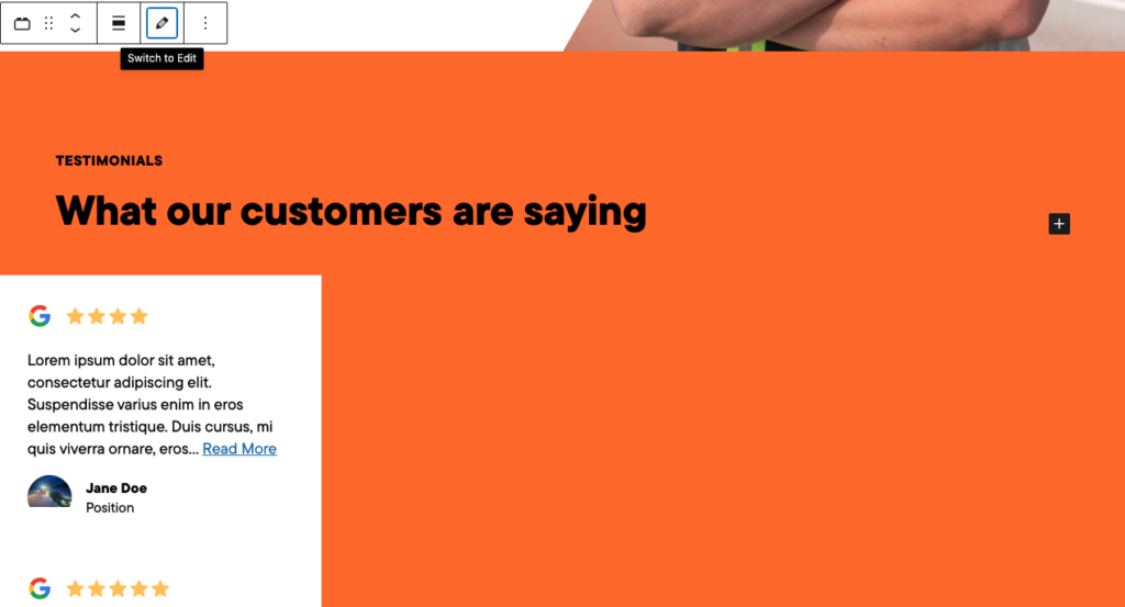 - Block is limited to 3 testimonials